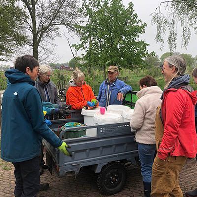 Door de planten goed aan de praat te krijgen, zorgen we ervoor dat ze meer stofjes de grond inpompen, en dus het bodemleven voeden. Om de planten een boost te geven slaan we aan het experimenteren met bladmest-brouwsels. We gooien omliggende onkruiden in een bak water om een tijdje te rotten (dat stinkt!). Daardoor komen mineralen vrij in een vorm die voor andere planten goed opneembaar is. In die onkruiden zitten vaak juist de mineralen waar tekorten van zijn (daarom zijn ze ook voor ons zo gezond!). Deze plantengier sproeien we op de blaadjes, waar ze direct worden opgenomen. Om precies te weten waar het aan ontbreekt, sturen we een paar keer per jaar zakken vol blaadjes naar een lab voor bladsap-analyses. Met die resultaten kunnen we gerichter ingrijpen, en zien of het werkt.