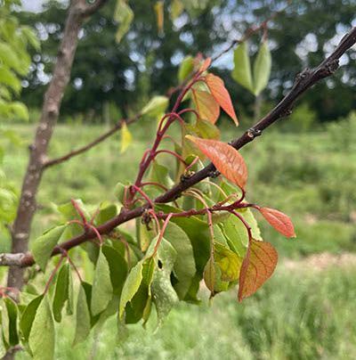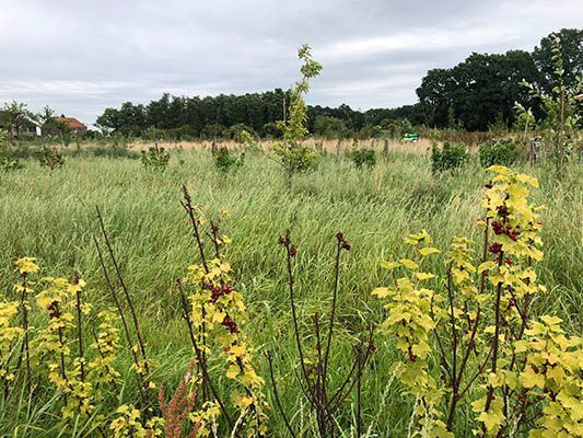 Bij de meeste planten in ons voedselbos is de fotosynthese (vaak te herkennen aan diepgroen glanzend blad) nog niet optimaal. Dat geldt voor een heel groot deel van de planten in Nederland. Dat heeft alles te maken met de kwaliteit van de bodem. Daar moet voldoende water en lucht in zitten, en alle verschillende mineralen die de plant nodig heeft. In een verdichte bodem zit geen lucht, en het water kan er niet in. Op een paar plekken hebben we, voordat we gingen planten, daarom de grond losgemaakt. Diep wortelende wilde planten, zoals ridderzuring, doen ook goed werk. Door de bodem zo min mogelijk te belasten, vooral met zware machines, vermijden we verdere verdichting. Verder willen we zoveel mogelijk organische stof in de bodem. Als een spons houdt dat water en voedingsstoffen vast. Hard nodig op onze zandgrond, waar alles snel wegspoelt. Afstervend blad en planten zorgen voor meer organisch materiaal op en in de bodem, en wij helpen een handje door te mulchen met houtsnippers en maaisel.