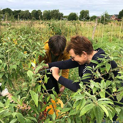 Wat vind je leuk aan het werk in het voedselbos? “Praktisch bezig zijn: Lekker aan het werk zonder zorgen over piektijden, verwerken en zo. Ik leer ook veel in het voedselbos, vooral hoe alles met elkaar verbonden is. En de mensen die hier werken, het enthousiasme van de vrijwilligers. Het is toch een aparte groep: heel verschillende mensen die je niet zomaar in je buurt of je werk tegenkomt, die allemaal iets wezenlijks met elkaar delen. Daardoor krijg je mooie gesprekken met elkaar. Mensen voelen zich veilig hier, durven zich kwetsbaar op te stellen. Ik krijg wel eens de vraag of het niet een hoog geitenwollensokkengehalte heeft. Dat vind ik niet, het is een mooie aanvulling op mijn bestaande sociale netwerk. Ik vind het leuk om die mensen elke week weer te ontmoeten.”
