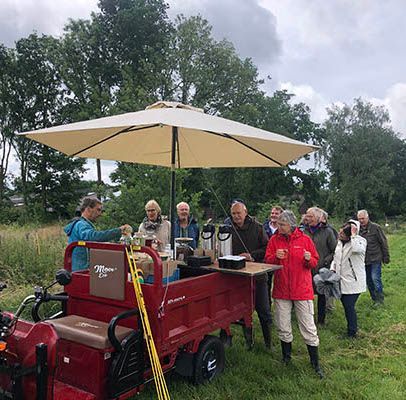 Ondertussen verkennen we andere afzetkanalen in de regio. Ons fruit is vanaf juni te koop bij de kraam van Het Groene Spoor, op de Enschedese zaterdagmarkt. Ook leggen we contact met verschillende horecagelegenheden. Daarmee komt voorzichtig de eerste afzet op gang, én waardevolle feedback van klanten: vinden ze de honingbessen een beetje te pruimen? En wat mag een bakje moerbeien kosten?