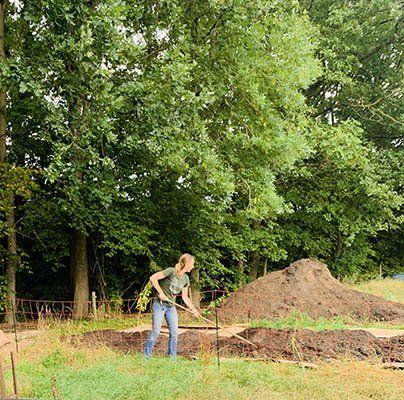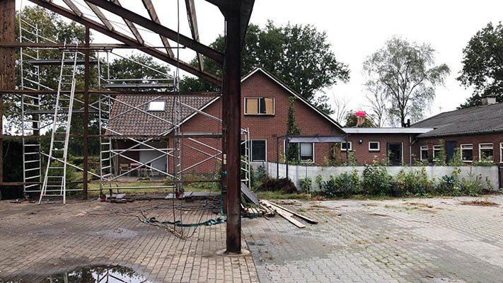Jonge boeren uit de omgeving kwamen melkvee-inventaris losschroeven uit de koeienstallen. Wij maakten een begin met de asbestsanering en het schoonmaken van de mestkelders. Maar het echte werk aan de stallen en bijgebouwen kan pas beginnen als we een globaal plan hebben voor het voedselbos en de daarbij behorende erfinrichting. Er gaat dus nog flink wat tijd zitten in de plannenmakerij.
