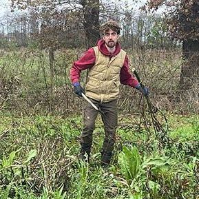 Sinds de herfst van 2024 werkt Stach drie dagen per week mee in Voedselbos Glanerbeek. Hij is hier helemaal op z'n plek.
