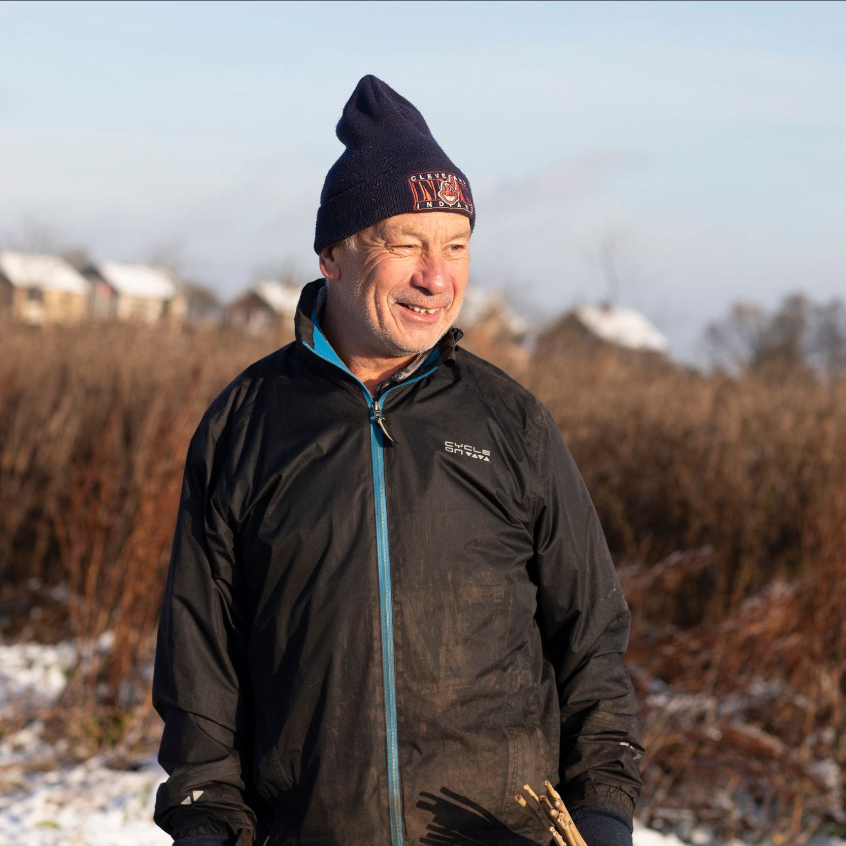 Wilfried is onze eerste vrijwilliger. Vanaf herfst 2022 komt hij wekelijks meehelpen in Voedselbos Glanerbeek. Wilfried woont in Glanerbrug en is een jaar of vier geleden met pensioen gegaan. Van jongs af aan is hij met tuinen en met groenten kweken in de weer geweest. Behalve in zijn eigen biologische groentetuin is hij ook als vrijwilliger actief in de groentetuin van Bouwhuis, een instelling voor geestelijk en lichamelijk gehandicapten in Enschede. Hij hoorde van anderen dat er een voedselbos zou starten in Glanerbrug en was meteen geïnteresseerd. Als Wilfried niet op de fiets door Europa of Azië zwerft, is hij elke vrijdag in het voedselbos te vinden, onverstoorbaar aan het werk.