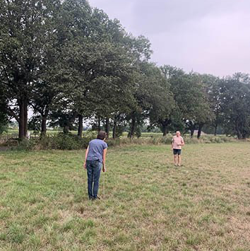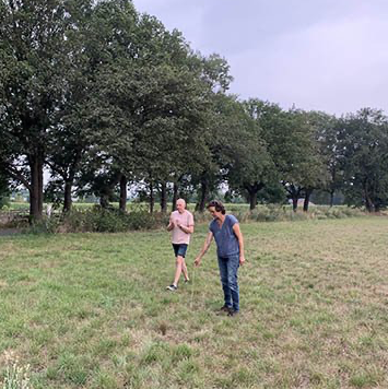 Op het veldkavel is de situatie lastiger: daar geen beek, sloot, mestkelders of wateraansluiting. Een bron slaan ligt niet voor de hand: verschillende buren en bedrijven weten uit ervaring dat dat in de dikke taaie keileemlaag geen zin heeft. Vergeefs proberen is een dure grap. We krijgen de tip om een wichelroedeloper in te schakelen. Die loopt met twee koperdraadjes over het land om aardstraling op te sporen en daarmee de plekken aan te wijzen waar de kans op water groter is. En jawel hoor, de draadjes slaan hier en daar uit. Fascinerend. We markeren drie punten om aan te boren. Of gaan we voor een waterzak? De tankwagen? We zijn er nog niet uit. Wordt vervolgd..