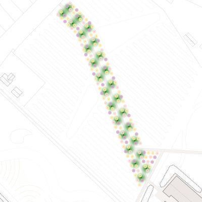 We willen een heldere ingang aan de straat, waarbij je écht aankomt in het voedselbos, zodra je de afslag neemt. Het moet vanzelf duidelijk zijn wie wáár moet zijn. De weg komt recht aan op het publieksdeel van het erf, waar de boerderijwinkel en proefkeuken gepland staan. En er is een route naar de kwekerij, een stukje verderop. De buren krijgen een eigen aftakking. Zo is er voor iedereen voldoende rust en privacy.