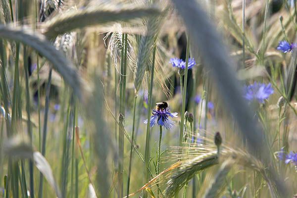 Op ooghoogte vallen andere dingen op. Waar het veld niet meer gemaaid wordt krijgen allerlei grassen en kruiden de kans om tot wasdom en bloei te komen. Het gonst daar van de insecten, en ook allerlei vlinders weten dit open buffet te vinden. Die insecten, en de plantenzaden, trekken weer allerhande vogeltjes aan die de buren niet eerder gespot hadden op deze plek.