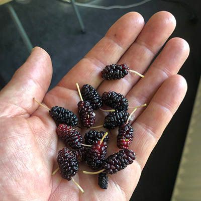 We hadden nog geen oogst verwacht van de voedselbos-aanplant in april dit jaar. Toch werden we in juni verrast door een overvloed aan zwarte bessen. Emmers vol hebben we geplukt, en ook bezoekers hebben kilo’s meegenomen. In eigen keuken hebben we de bessen verwerkt tot jam, siroop, fruitleer en taart, en wat overbleef ging de vriezer in. Het maakte wel duidelijk dat de productie een stuk sneller op gang komt dan gedacht, en dat we écht snel ondernemers moeten vinden die al dit fruit gaan verwerken en vermarkten. Tips zijn welkom!