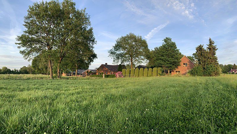 Samen zijn we sinds begin 2020 op zoek naar een geschikte plek voor dit voedselbos, een kwekerij én onze gezinnen. Na meer dan 20 plekken te hebben onderzocht, tekenden we eind december 2021 het koopcontract voor een melkveehouderij in het Twentse Glane, tussen Enschede en de Duitse grens. Twee bedrijfswoningen, héél veel stallen en 25 hectare groen grasland omzoomd door boomsingels, aan de rand van het stedelijk gebied. De ideale plek om te gaan bouwen aan onze droom.
