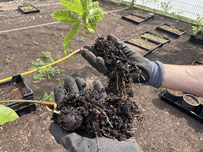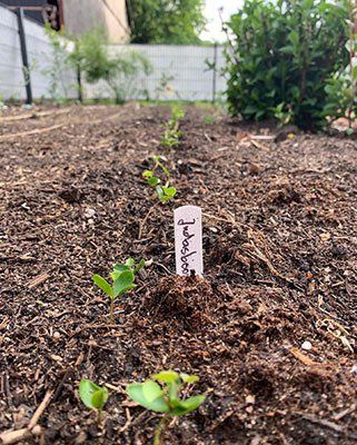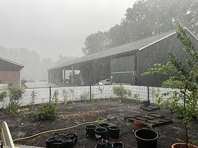 We leggen een bed aan voor de eerste planten, die we straks kunnen stekken om planten voor het voedselbos te maken. Hier staan nu de in de Amsterdamse achtertuin opgekweekte plantjes. Ook de eerste boompjes zijn gepoot: de perenbomen die we als welkomstcadeau kregen van Jan en Marjo, en de vorig jaar zelf gezaaide kastanjes en walnoten. Behalve veel droogte krijgen die ook te maken met de eerste flinke onweersbuien.