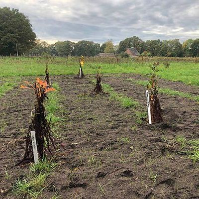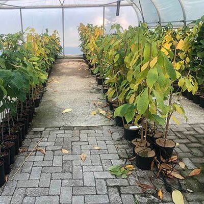 Een paar weken later staat de volgende lading planten voor de deur, te groot om zelf op te halen: Een pallet van kwekerij Arborealis in Wilhelminaoord. Dé specialist in voedselbosplanten in Nederland, een grote inspiratiebron en erg behulpzaam in de weg naar het starten van de kwekerij. Jessica bezoekt ook kwekerij Asimina bij Dalfsen. Daar heeft Jaap zich met veel liefde op de kweek van de pawpaw (Asimina triloba) gestort. Bij het proeven snap je meteen waarom. Ook bij deze kwekers is er al heel wat uitverkocht. Over de afzetmarkt hoeven we ons geen zorgen te maken.