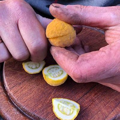 Dan door naar België. Dithmar van Kwekerij de Moerbeiboom in Geraardsbergen kruist en kweekt zelf bijzondere vruchtbomen zoals de moerbei (tja, die was te verwachten), de kaki en haar winterharde zusje de persimoen, de pawpaw, de vijg en de vruchtlijsterbes. Dithmar adviseert ons: van welke planten kunnen we op arme zandgrond in het Twentse klimaat toch lekkere oogst verwachten? Hij legt uit dat veel van zijn planten prima winterhard zijn, maar bij ons vaak niet genoeg zon krijgen om goed af te rijpen. Met het oog op de zonne-uren brak 2022 alle records - voor deze vruchten dus een topjaar. We zijn er - niet geheel toevallig - precies in de oogsttijd en Dithmar laat ons veel van dat lekkers proeven.