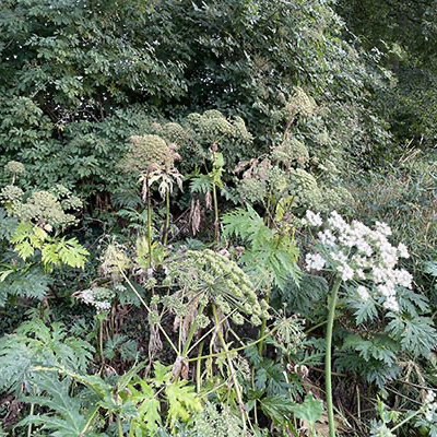 Nog een beruchte invasieve exoot is de Reuzenbereklauw (Heracleum mantegazzianum), een enorme plant uit Siberië die wel drie meter hoog kan worden. Niet te verwarren met de veel kleinere inheemse berenklauw (Heracleum sphondylium), die we graag zien in ons voedselbos om z'n smakelijke stengels en aromatische zaden.