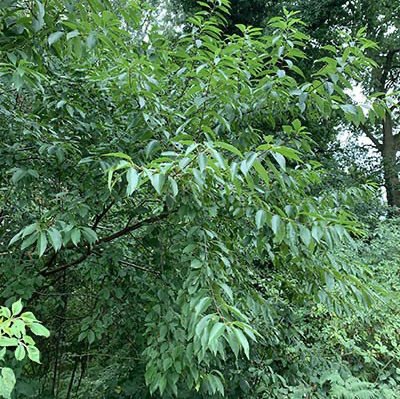 Dan is er de Amerikaanse vogelkers (Prunus serotina). Niet zo'n beproeving als de vorige twee, maar toch zien we 'm liever gaan, zodat andere planten en dieren meer kans krijgen. Doe je niks, dan heb je zo een bos vol: Vogels zijn dol op de besjes, en verspreiden zo het zaad over grote afstanden. In plaats van dit boompje planten we straks de inheemse vogelkers (Prunus padus) en andere planten uit de Prunusfamilie (Prunus), waar ook de kers, de abrikoos en de amandel bij horen.